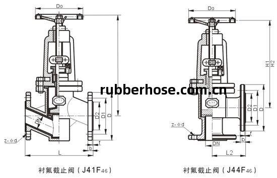 角(jiao)式襯氟(fu)截(jie)止閥(fa)主要外(wai)形及(ji)連(lian)接尺(chi)寸: