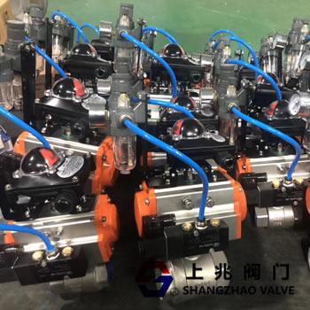 氣(qi)動開關球(qiu)閥(fa)還配有(you)行(xing)程(cheng)限位(wei)開關、電磁(ci)閥(fa)、減壓閥和0.4-0.7MPa氣(qi)源(yuan)實現(xian)開關操作,並(bing)發(fa)出(chu)兩(liang)對無(wu)源觸(chu)點(dian)信(xin)號指示(shi)閥門(men)的(de)切(qie)換(huan)。