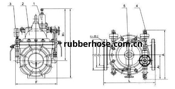 | DN | L | A | A1 | H | H1 | F | D mm | D1 mm | D2 mm | n-Φd | ||||||||