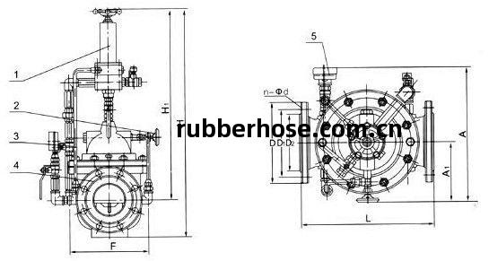 | DN | L | A | A1 | H | H1 | F | D mm | D1 mm | D2 mm | n-Φd | ||||||||