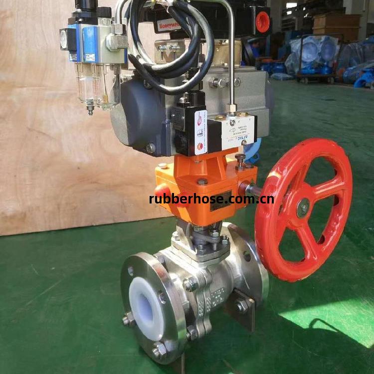 Q641F46 氣(qi)動襯(chen)氟球閥系(xi)襯(chen)氟閥門系(xi)列中(zhong)的(de)壹種(zhong)產品,采用氟塑料(liao)作為(wei)內襯(chen),並配之(zhi)以新型(xing)的(de)帶桿(gan)球(qiu)體結(jie)構(gou),再加(jia)上(shang)其(qi)獨(du)特(te)的(de)彈性(xing)唇(chun)式(shi)密(mi)封(feng)座(zuo)結(jie)構(gou),使其具(ju)有(you)普(pu)通(tong)球閥的(de)各項優(you)點(dian),能(neng)在(zai)大壓(ya)差和較大的(de)溫差變(bian)化(hua)範(fan)圍(wei)內具(ju)有(you)高(gao)密(mi)封(feng)性(xing)能(neng)和(he)低操作扭(niu)矩(ju)。可(ke)作緊(jin)急(ji)切斷閥或(huo)調(tiao)節之用,本(ben)產品適(shi)用(yong)於各種(zhong)工業管(guan)道中(zhong)液(ye)體和氣(qi)體的(de)輸送(包(bao)括(kuo)蒸(zheng)氣(qi)),在各種(zhong)酸、堿、鹽類(lei)等(deng)強(qiang)腐(fu)蝕(shi)性(xing)介質中(zhong)均(jun)能(neng)很(hen)好(hao)地(di)工作。